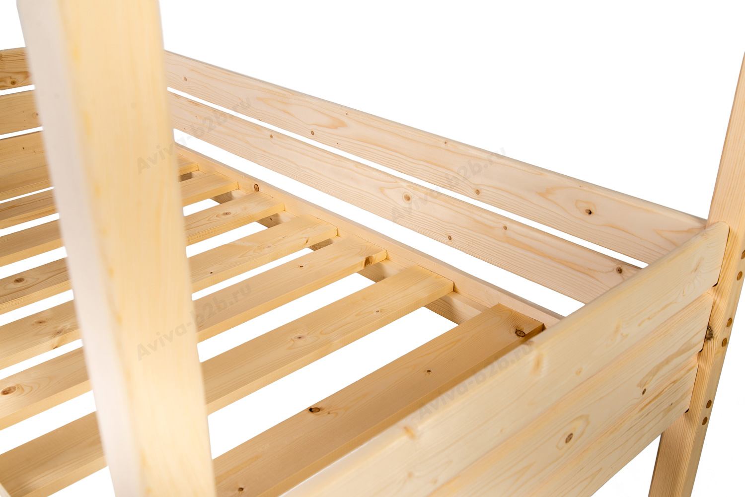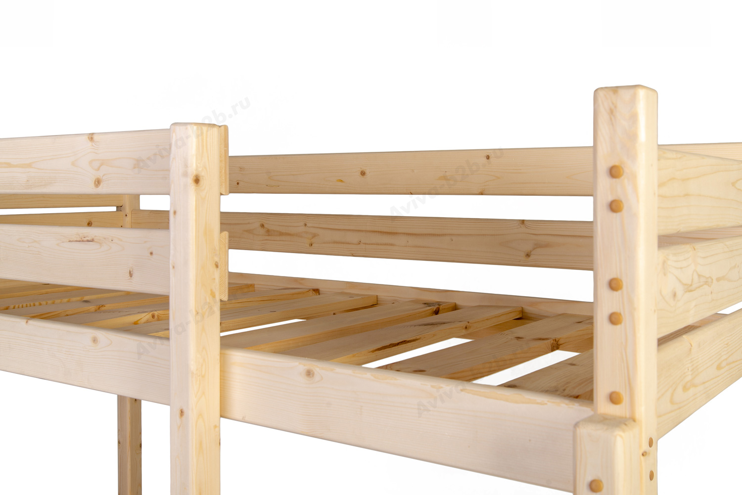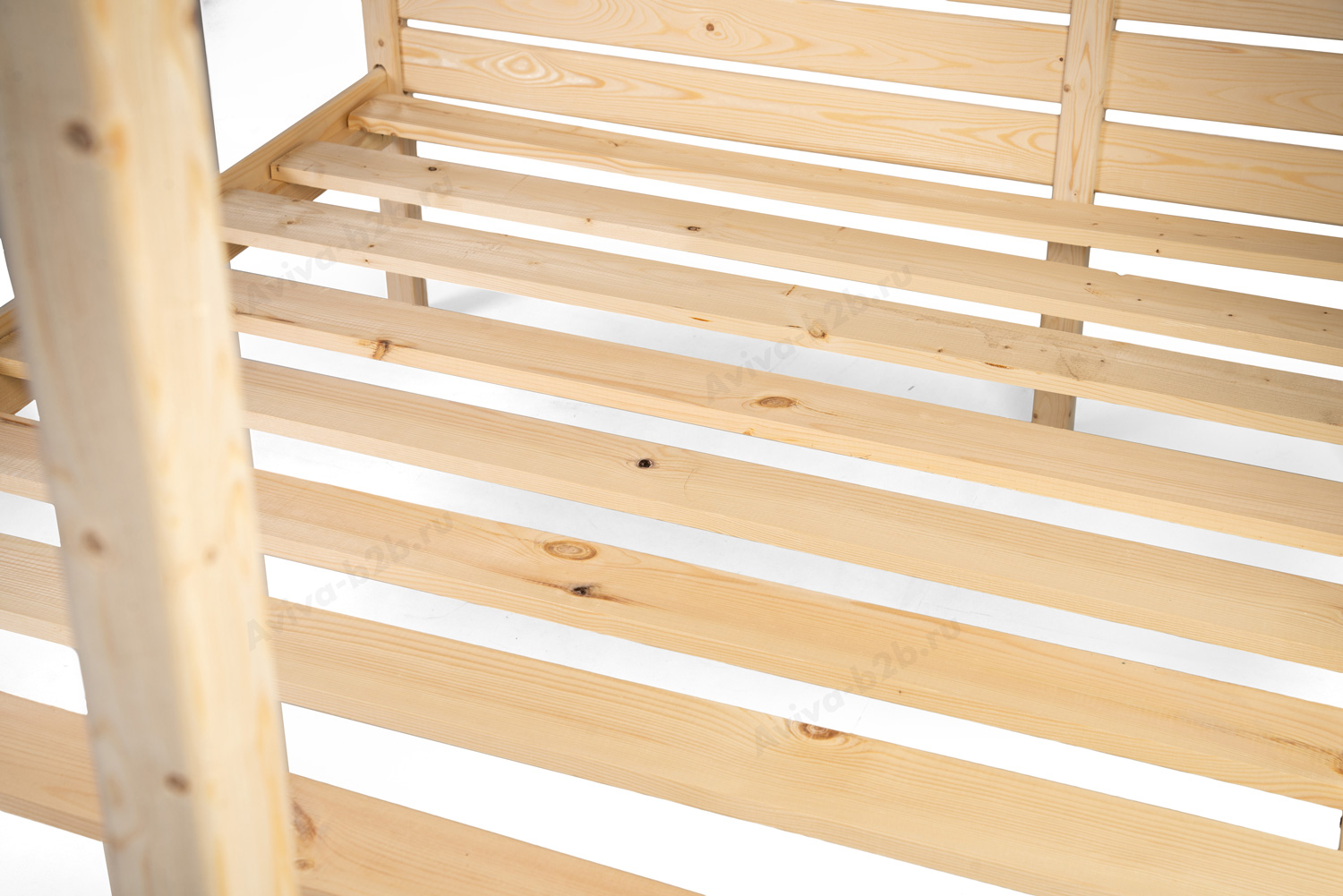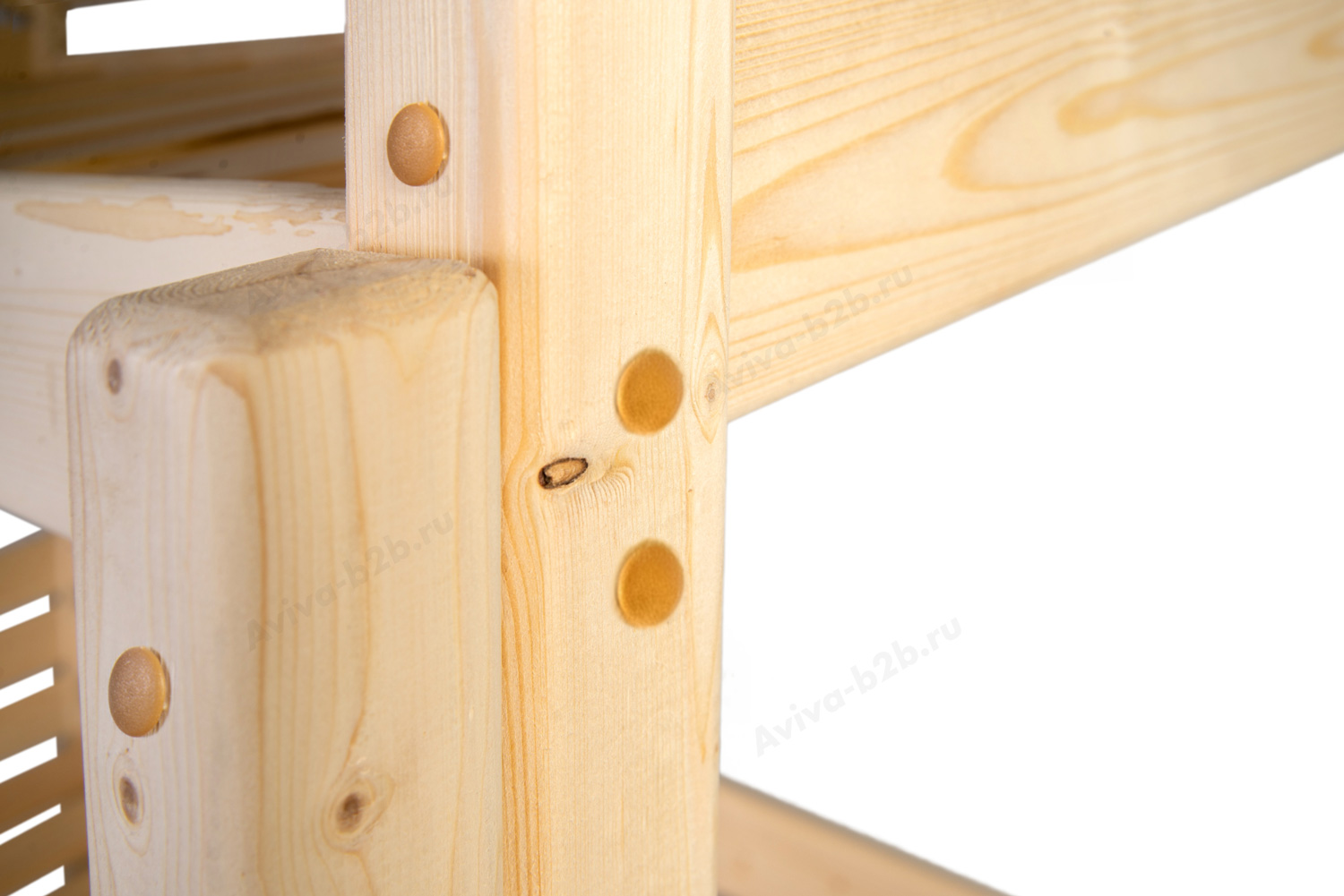 Усиленный брус 50х50мм , горизонтальная обвявзка толщ 20мм и евровинт-конфирмат 7х70мм позволяют конструкции выдерживать повышенные нагрузки до 200 кг на спальное место