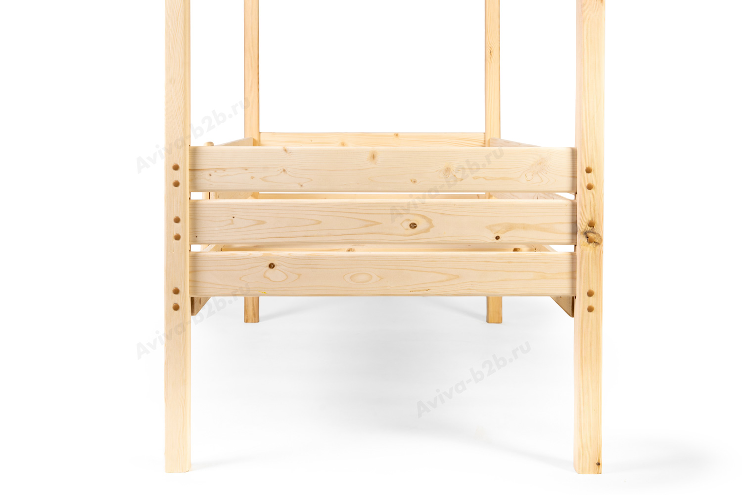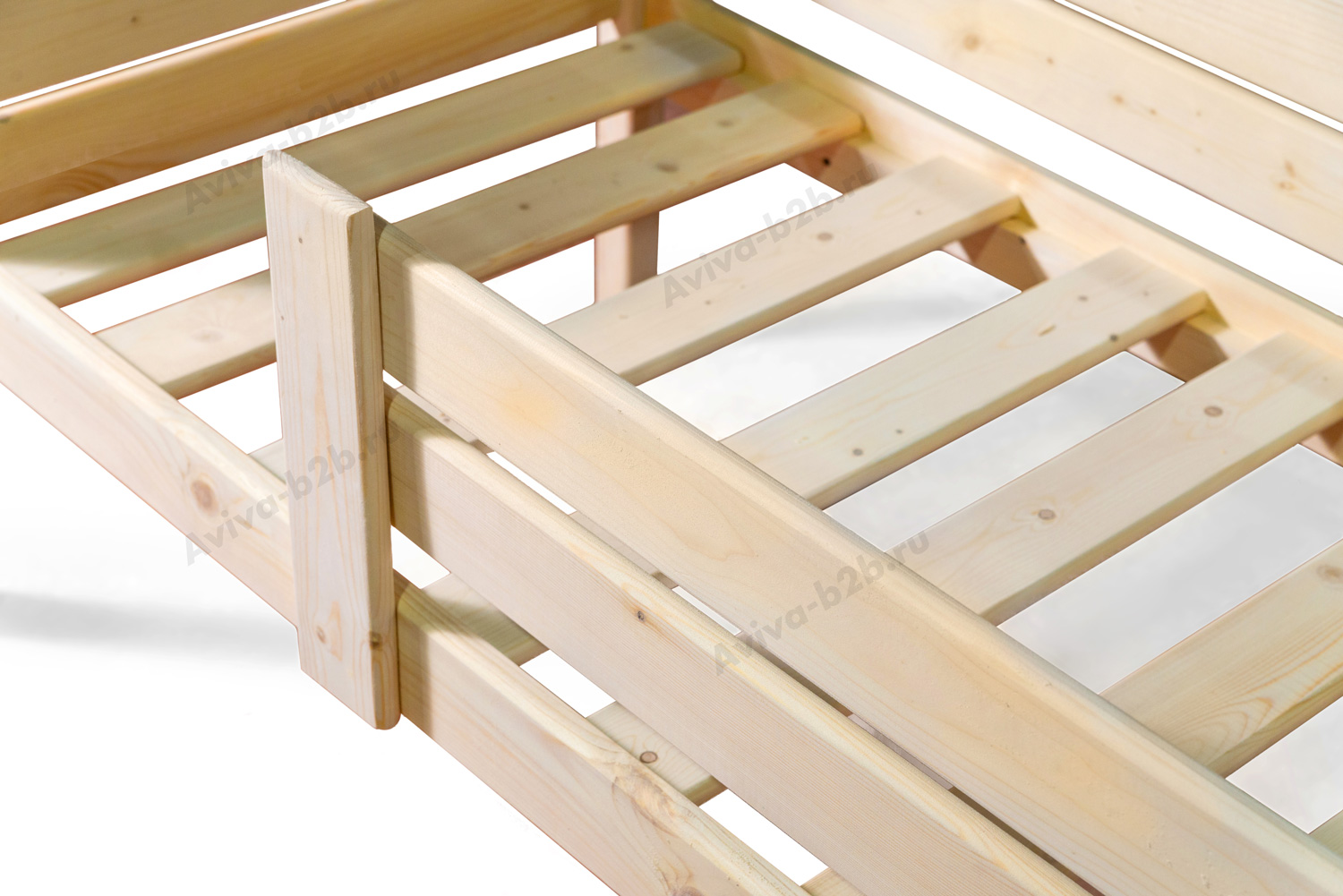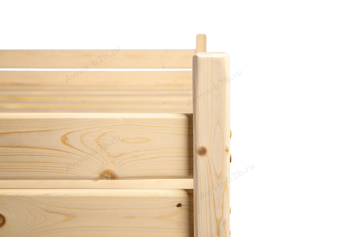 Усиленный брус 50х50мм , горизонтальная обвявзка толщ 20мм и евровинт-конфирмат 7х70мм позволяют конструкции выдерживать повышенные нагрузки до 200 кг на спальное место