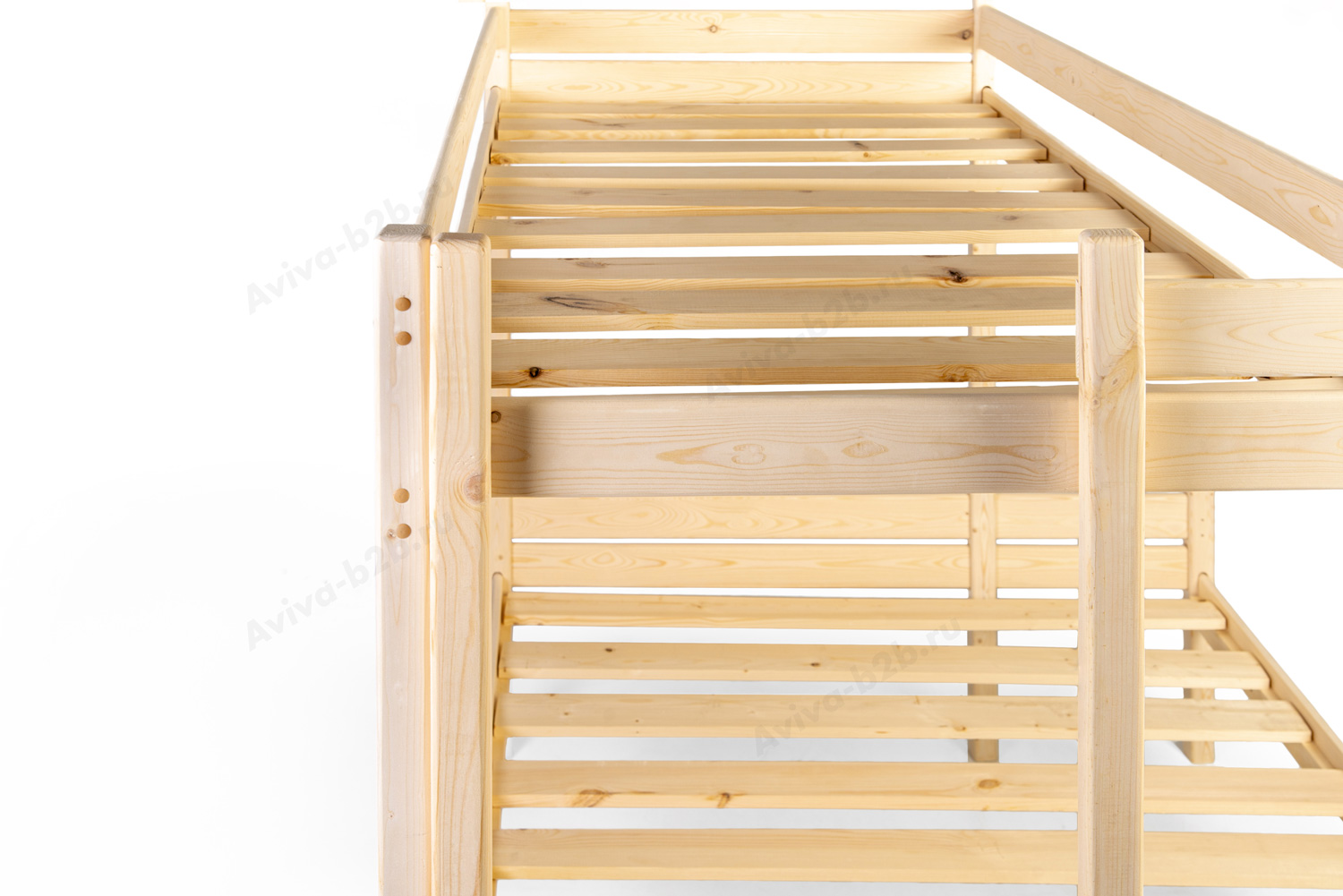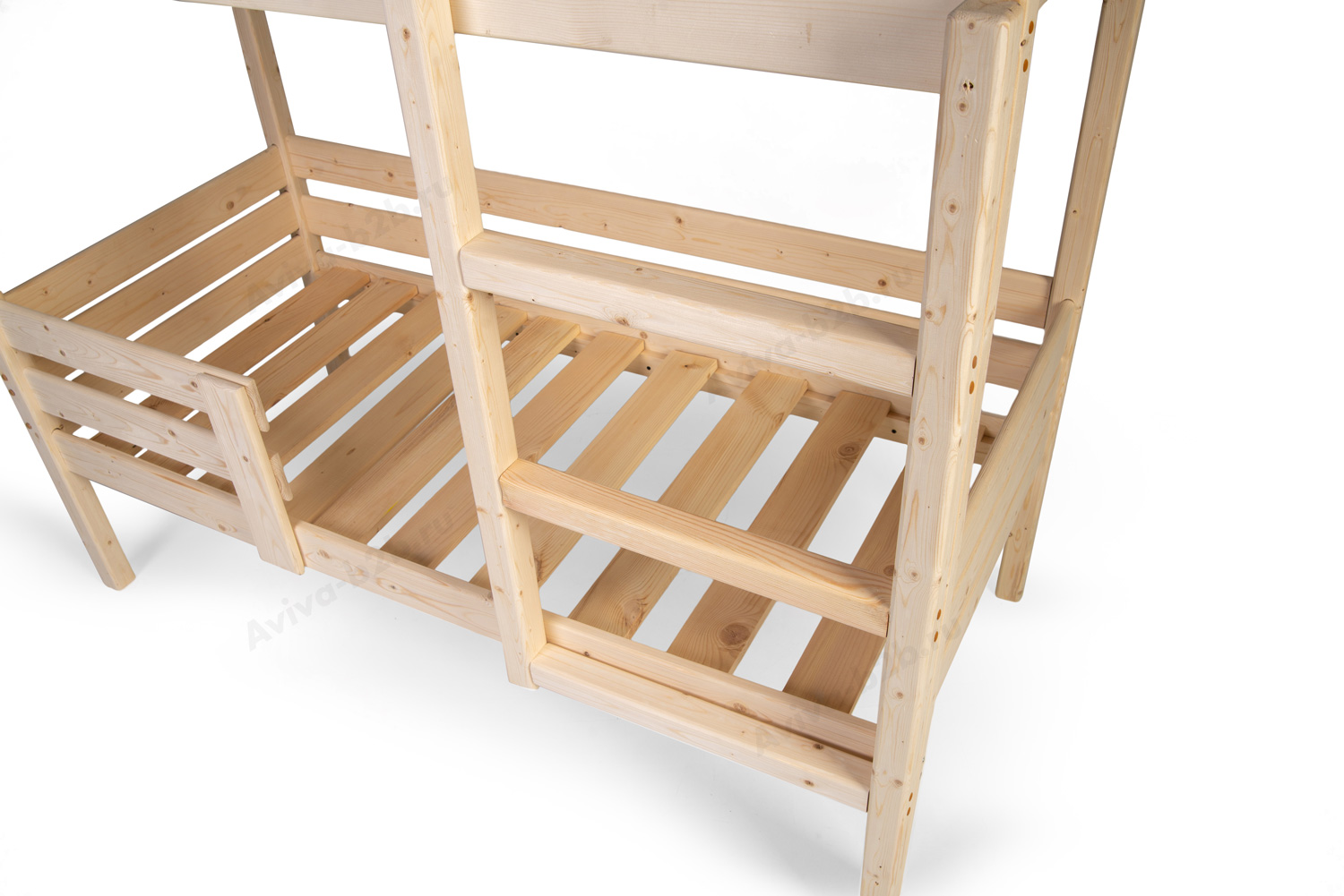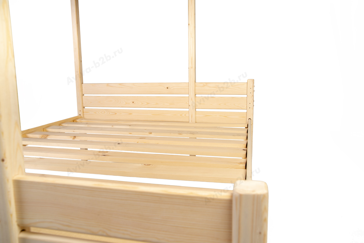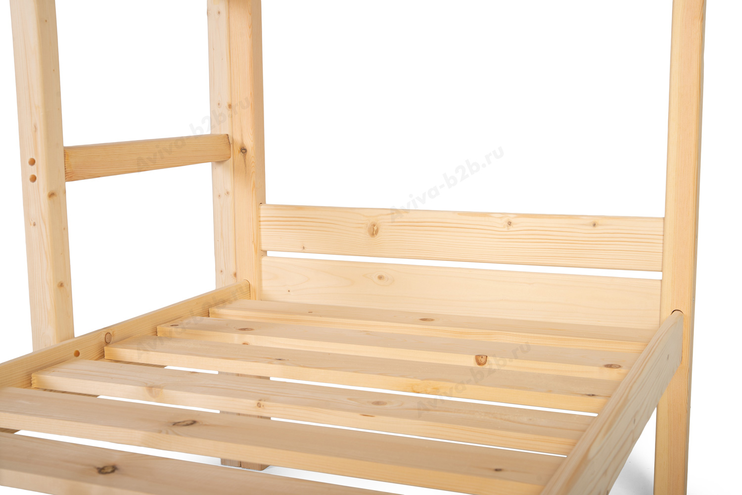 Усиленный брус 50х50мм , горизонтальная обвявзка толщ 20мм и евровинт-конфирмат 7х70мм позволяют конструкции выдерживать повышенные нагрузки до 200 кг на спальное место