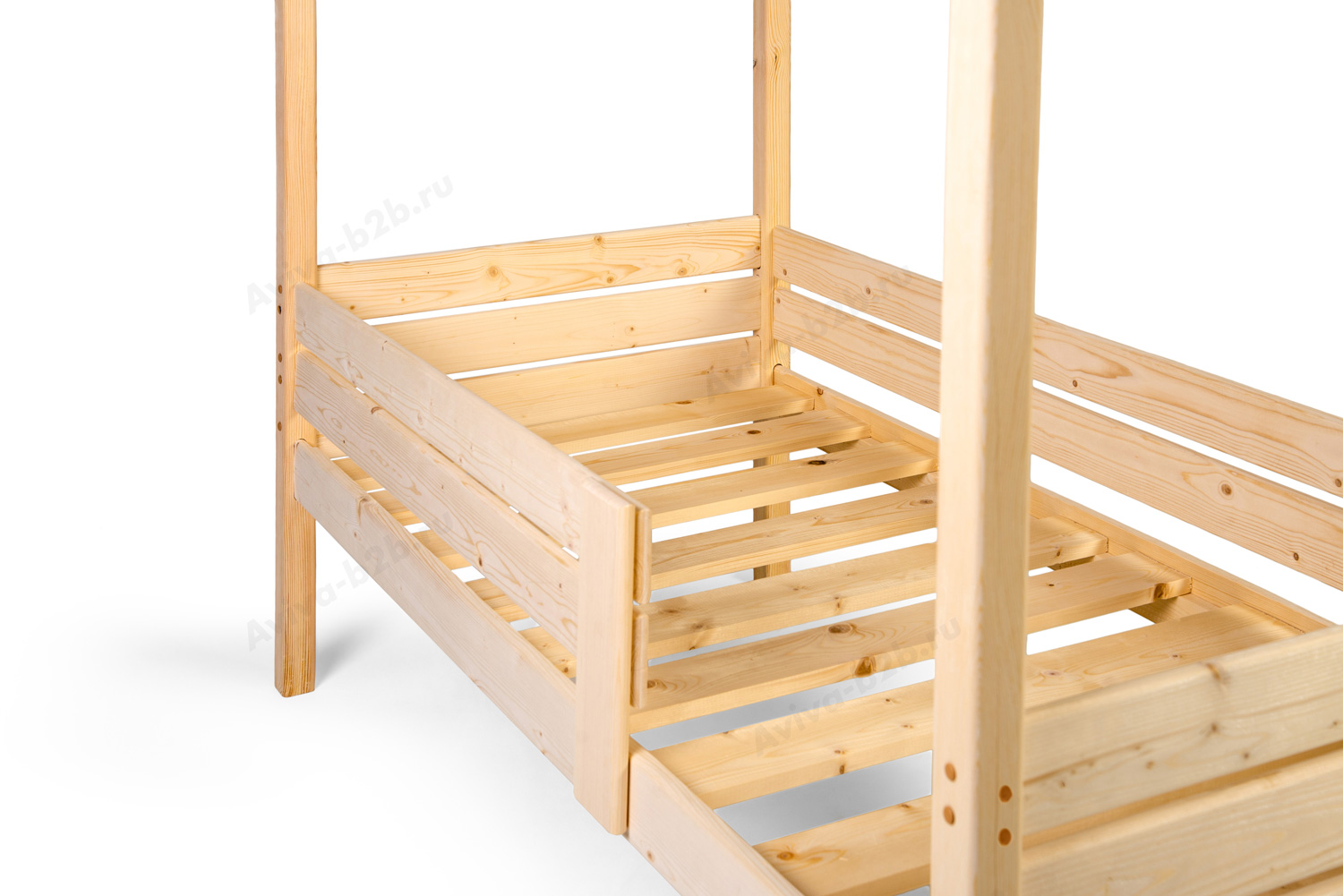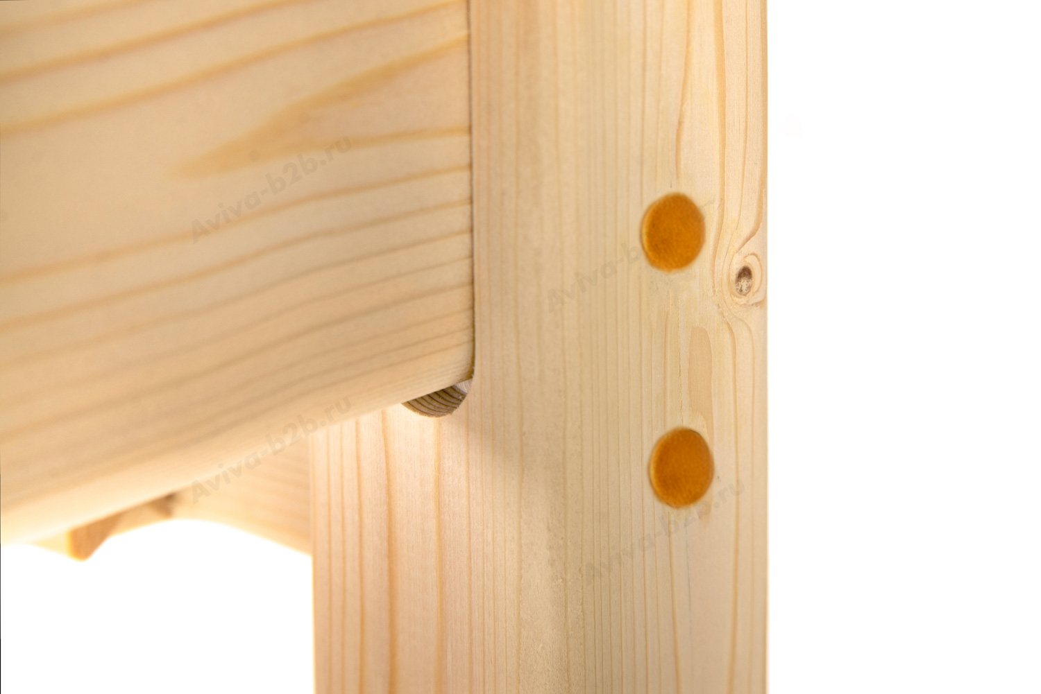 Простую и аккуратную сборку обеспечивают соединения "шип-паз" и царговые соединения , опора подматрасного основания), при этом обеспечивая безопасность и дополнительную надежность. А декоративные заглушки и скругленые углы гарантируют максимально комфортное и безопасное использование